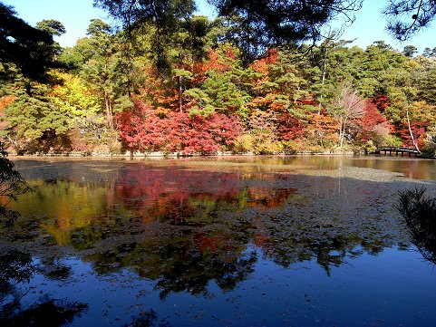 これも池にかかる枝ぶりですが、ここの紅葉は例年真っ赤々です。