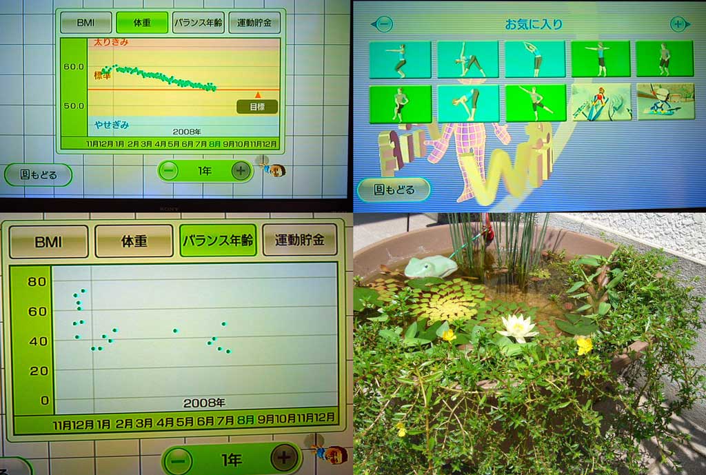 11月にWiiFitがでてすぐに購入週に1、2回してましたが、今年の正月についに60kgをオーバー、それから毎日15分を目標にヨガと筋トレをはじめました、食事も一応気をつけながらつづけること8ヶ月、なんとか54kgまでダイエットできました、ウェスト周りの余分な脂肪もだいぶ減りました。