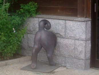 福井のお菓子やさんの庭のあちこちに ユーモラスな彫刻があった。