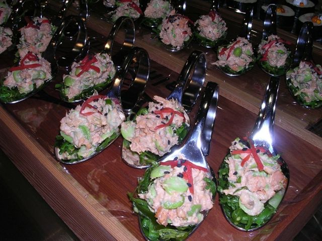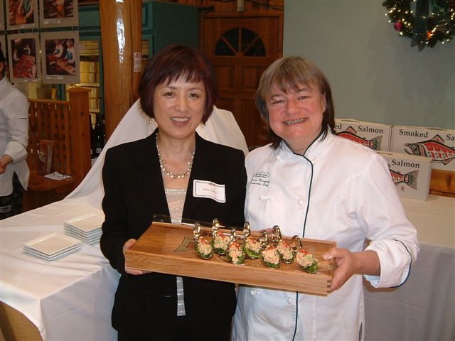 先日、店のVIPカスタマーを招いての試食会を開きました。始めての試みですが、The Fish Houseというレストランの、ここバンクーバーでは有名なシェフがうちのサーモンを使って自らオードブル作りのデモンストレーションしてくれました。