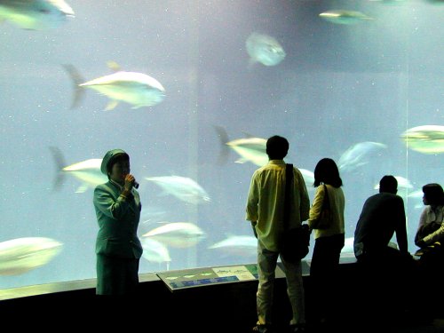 写真は、葛西水族園のまぐろやけど、これでも小さい方で、体長1メートル、体重50〜60kgはあるらしい。。でかいのは、1.8メートル、110kgのもいるそうな。
