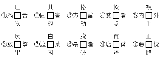 【問題】上下・左右の文字と熟語になる漢字を□に入れてください。(我が家のトイレのカレンダー便蔵君より)